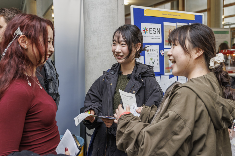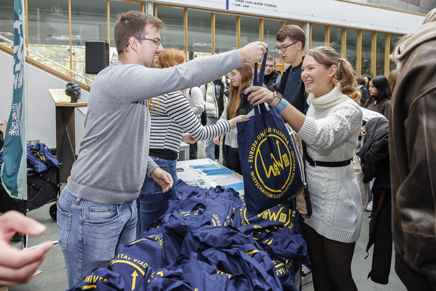 Hunderte neue Studierende sorgen seit dem 6. Oktober 2025 – schon eine Woche vor dem Vorlesungsstart – für einen belebten Campus. Zum Auftakt der Einführungswoche für das Wintersemester 2025/26 kamen viele von ihnen gleich am Montagmorgen in das Gräfin-Dönhoff-Gebäude. Am Nachmittag wurde es dann beim Get-together im Kleist Forum feierlich und unterhaltsam. In den kommenden Tagen sorgen unter anderem die Fachschaftsräte für Informationen aus erster Hand: über das Studium, die Stadt und über die besten Ausgeh-Möglichkeiten.