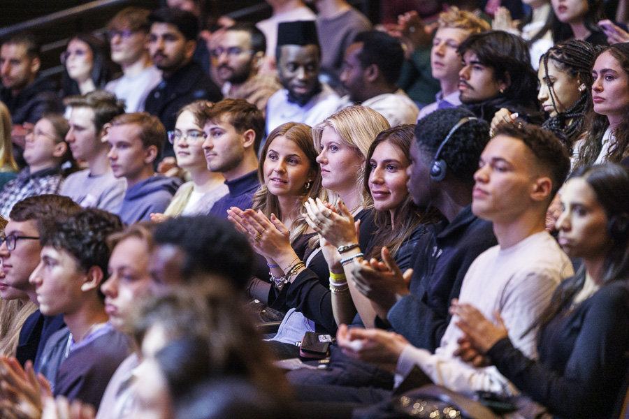Das Gewusel im Foyer des Gräfin-Dönhoff-Gebäudes lässt keinen Zweifel: Das Wintersemester hat begonnen. Am 6. Oktober treffen hier vor allem die Erstsemesterstudierenden aufeinander, erfahren von Unterstützungsangeboten an der Viadrina und lernen ihre Studiengänge besser kennen. Zum Auftakt begrüßt Vizepräsident Prof. Dr. Christoph Brömmelmeyer die neuen Studierenden im Hörsaal, bevor es in die Infoveranstaltungen der Fakultäten und Studiengänge geht.