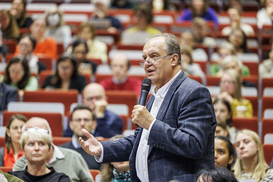 „Wissenschaft entfaltet ihre Wirkung nicht allein in Hörsälen, sondern da, wo sie öffentlich diskutiert wird“, so Viadrina-Präsident Prof. Dr. Eduard Mühle in seiner Begrüßung. Er eröffnete die Debatte mit einem nachdrücklichen Appell: Die Universitäten tragen eine besondere Verantwortung, sich kritisch mit den Entwicklungen rund um Künstliche Intelligenz auseinanderzusetzen und dieses Wissen zugänglich zu machen.
