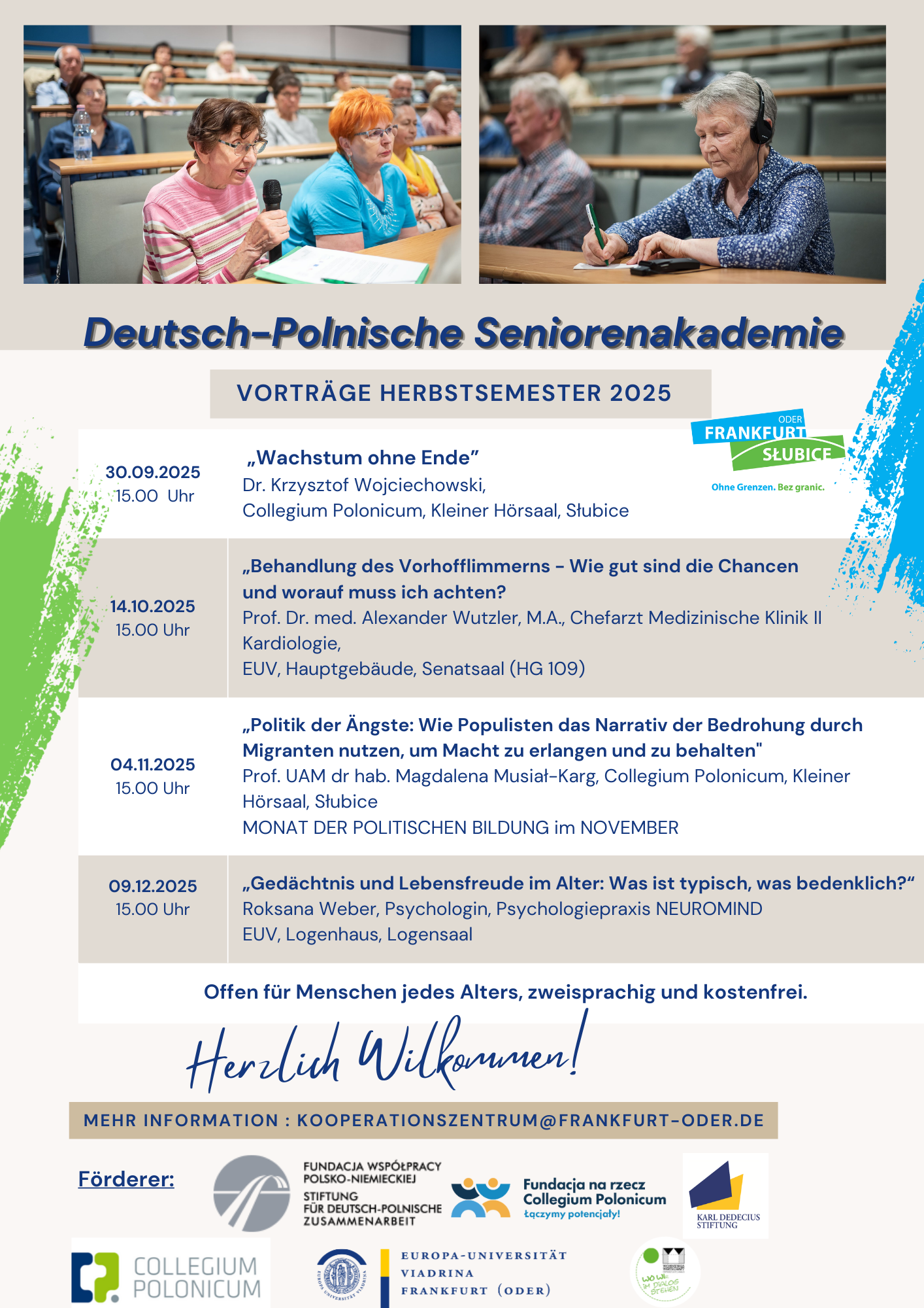 Vortrag im Rahmen der Deutsch-Polnischen Seniorenakademie. Der Vortrag wird simultan in die polnische Sprache gedolmetscht. Offen für Menschen jeden Alters. Keine Anmeldung erforderlich.