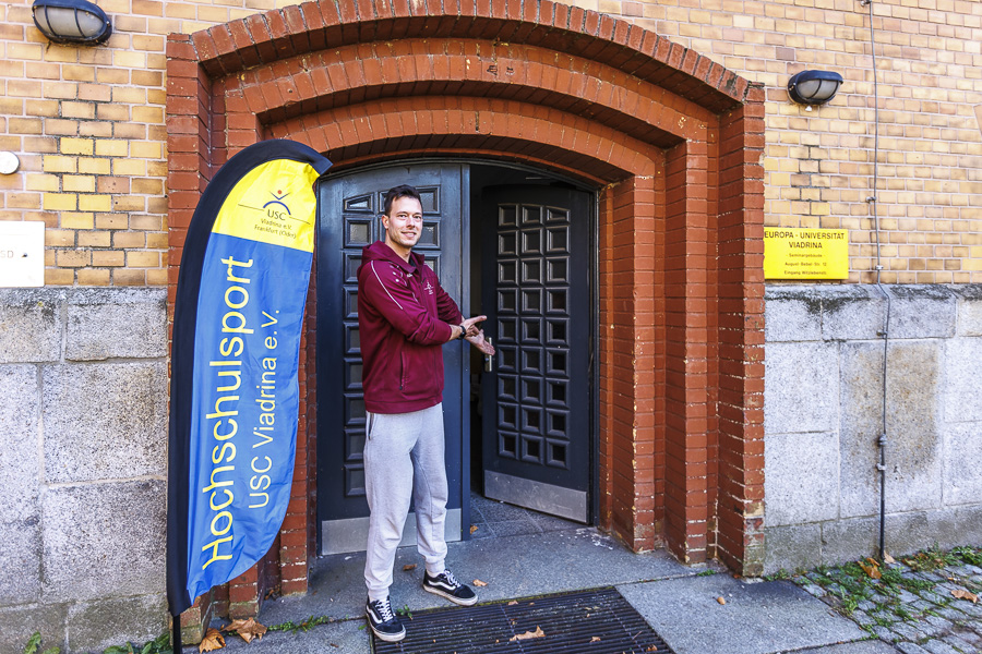 USC chairman Torsten Bergk and Viadrina Chancellor Robert Nissen, who is a member of the USC board by virtue of his office, brought a relaxed mood to the opening of the new facilities. For the sports club, which also organises university sports, the opening of the new rooms marks an important turning point: only a short time after the closures during the coronavirus pandemic, the USC had to move from its premises on campus to an alternative location due to the renovation of the coworking space. What was originally planned four months turned into almost four years. Over time the club lost members - and most of the sports equipment had to be stored due to water damage on the construction site in the Auditorium Maximum.